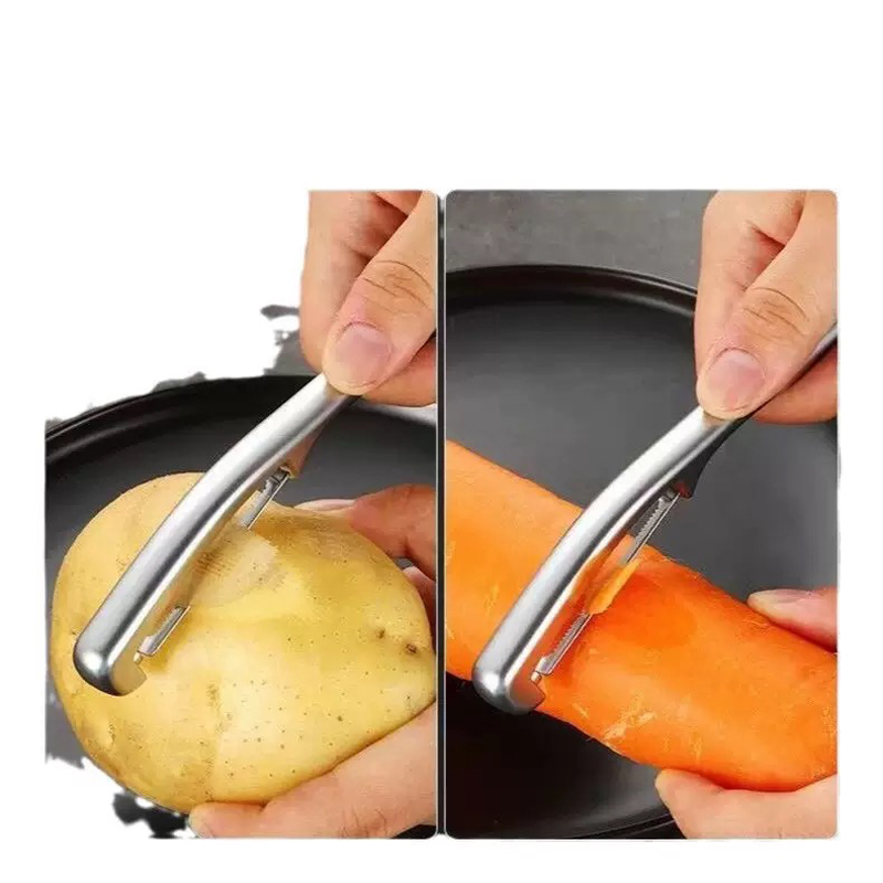 Maidir le háisiúlacht úsáide, tá an scamhaire glasraí cóimhiotal since lann díreach préimhe seo an-iniompartha agus éasca le teacht air cibé áit a dteastaíonn uait. Cibé an bhfuil tú sa chistin sa bhaile, ag ithe i mbialann, ag baint sult as picnic lasmuigh nó ag barra, is féidir leis éagsúlacht tascanna a láimhseáil gan stró.Cibé an gá duit cúcamar fada, úlla cruinne nó prátaí neamhrialta a réiteach, is féidir leis na fadhbanna seo a réiteach go héasca. freastalaithe, déantóirí baile, príomhchócaire agus mamaí. Cinntíonn úsáid cóimhiotail agus cruach dhosmálta nach gcreimfidh nó nach meirgefaidh an peeler, rud a fhágann go bhfuil sé éasca é a ghlanadh le huisce aon uair agus aon áit a n-úsáideann tú é gan imní ar bith faoi chreimeadh.