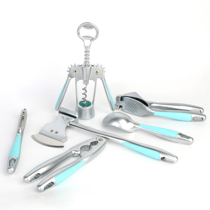 Is cuid de thacar nua 10-píosa na n-earraí cistine préimh é seo do chistin bhaile. Áirítear leis an mbailiúchán oscailteoir fíona, gearrthóir pizza, tairgeoir feola, preas gairleog, oscailteoir, peeler glasraí agus scáinteoir cnó le scoop uachtar reoite. Gnéithe ár ndearadh uathúil lámh plaisteach sainiúil le patrún diamaint le móitífeanna geoiméadrach a dháileadh go haonfhoirmeach. Ardaíonn dathanna pastel macaróin-spreagtha an aeistéitiúil iomlán, ag claochlú an táirge go cúlpháirtí cistine stylish. Tomhaiseann an scáinteoir cnó 17 cm ar fad le leithead uasta 5 cm agus meáchan 220 gram. Freastalaíonn a chuid gialla dé-mhéid ar chineálacha éagsúla cnó, lena n-áirítear seilfeanna crua, seilfeanna boga agus sceallóga scoilte, cuimsíonn na cineálacha láimhseála sceallóga oiriúnacha ag deireadh na ballaí. gléasta agus éifeachtúlacht spás stórála a uasmhéadú.